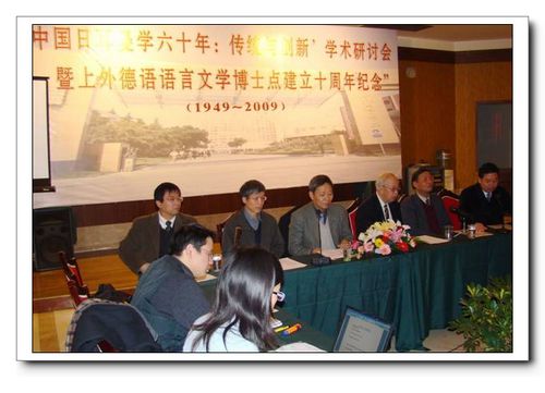 “‘中国日耳曼学六十年:传统与创新’学术研讨会暨上外德语语言文学博士点建立十周年纪念”,2009年12月4 - 6日在上外宾馆成功举行。来自国内相关高校和科研院所的重要学者,上外德语语言文学博士点建立十年来已毕业的二十名博士中的绝大多数,德语系相关教师和部分博士生,上海教育出版社德语方面的编辑,计五十余人与会。