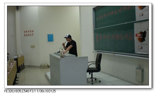 随后,由德语系党总支书记费国强老师讲话。他首先对能请到何念导演来到校园作报告表示荣幸,并对《上海壹周》全体员工表示感谢。他说,与何念导演近距离接触,了解其对文化的解读与看法,这对同学们来说是一次接受文化熏陶的宝贵机会。最后,他预祝本次讲座圆满成功。